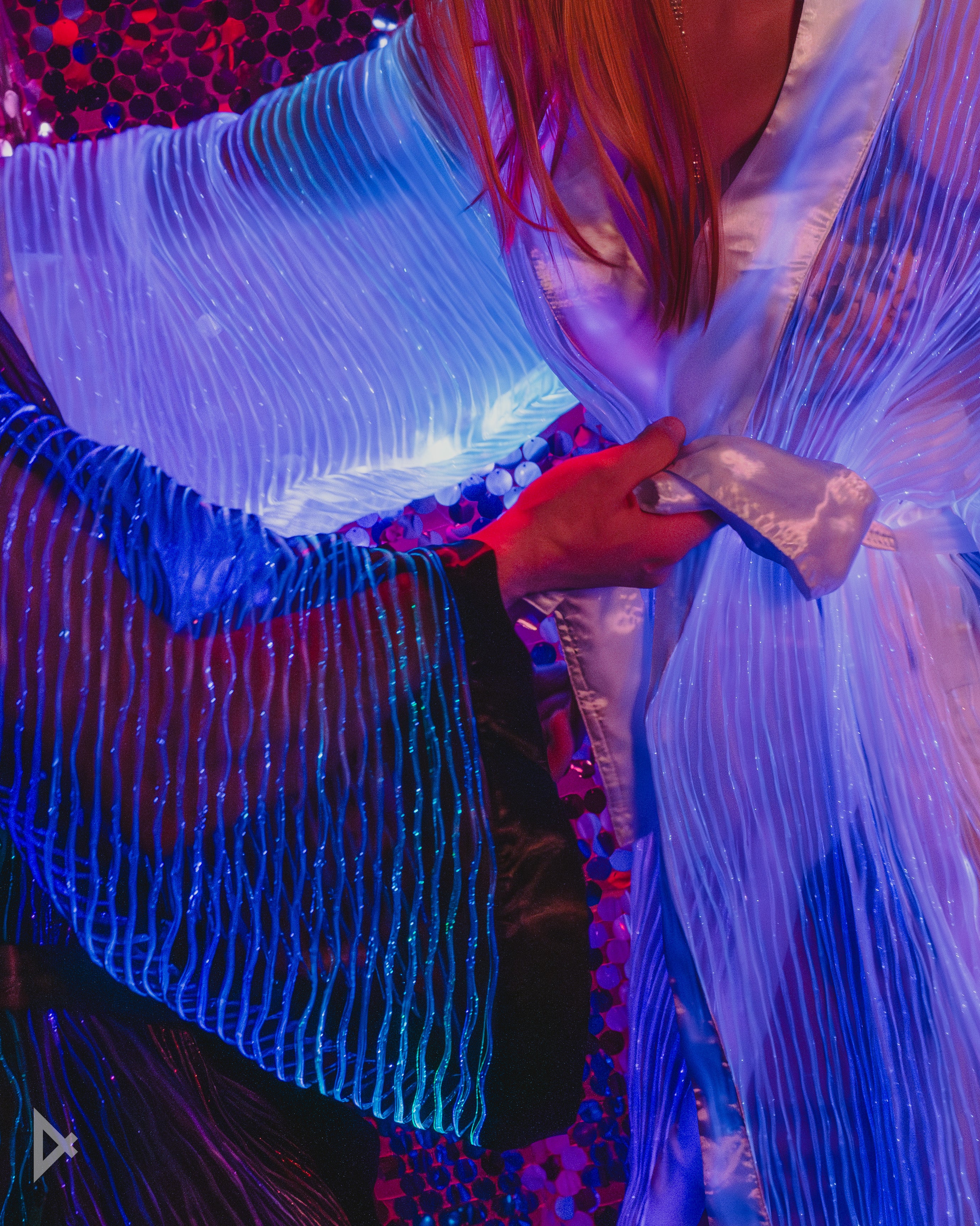 Equipped with a long-lasting battery life of 8-10 hours (via two discreet power banks), this kimono lets you dance the night away with lights that sync to the beat.