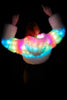 - 💡 LEDs under white fur (no fiber optic fabric) – Unlike our fiber optic fabric products, this jacket uses traditional LEDs placed beneath soft fur for a diffused, glowing halo effect.